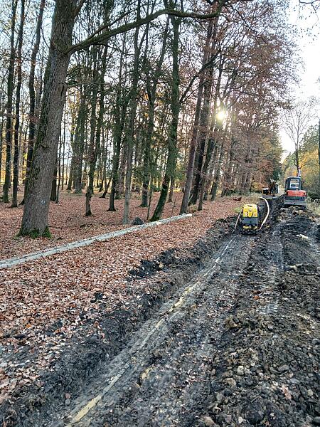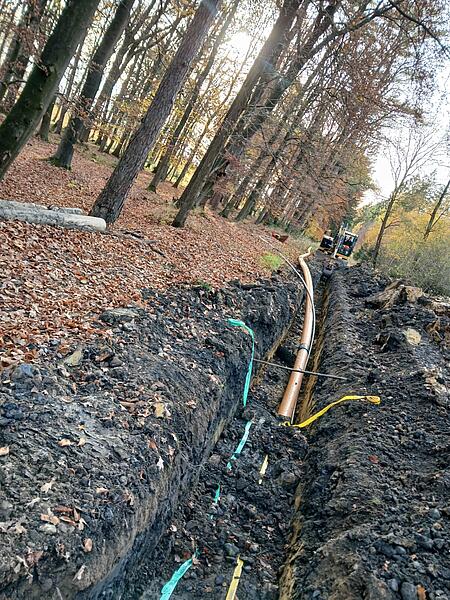 Mitverlegt haben wir auch das Glasfaserkabel zur Übermittlung der Echtzeitdaten der Anlage an unsere Steuerung. Darüber hinaus waren wir hier aber auch als Dienstleister tätig: Im Auftrag des Landkreises Osnabrück übernehmen wir im Rahmen unserer Erdarbeiten abschnittweise entlang der Strecke auch die Verlegung der Leerrohre für das allgemeine Glasfasernetz.