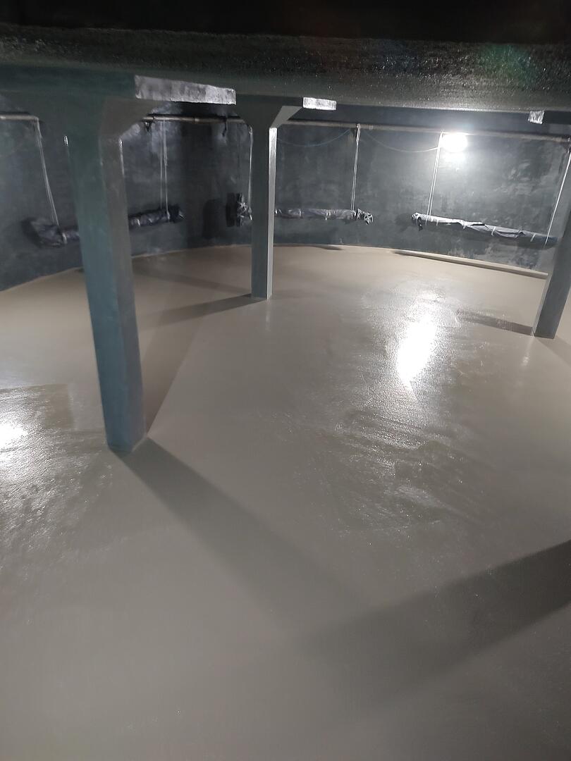 Belm. Die Sanierung des ersten der beiden Belmer Trinkwasserspeicher steht in den nächsten Wochen vor ihrem Abschluss. Dieser Tage wurde die Bodenplatte gegossen, die wasserdicht an die senkrechten Bauteile wie Außenwände und mittiger Stützpfeiler angebunden wurde. Sobald die Platte begehbar ist, können innenliegende Rohre und Leitern wieder eingebaut werden.