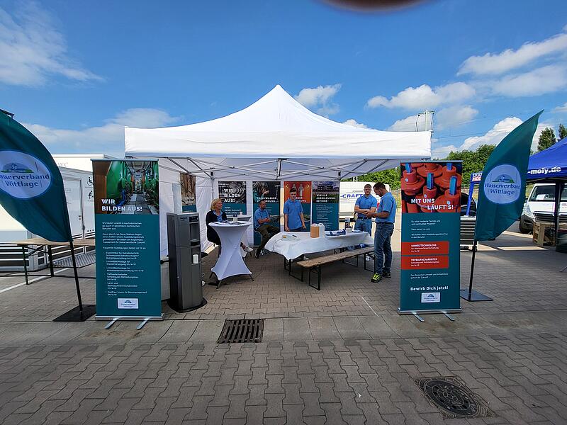 Informationen aus erster Hand lieferten dabei unsere Auszubildenden, Benjamin Höckmann, Cedric Macho und Dennis Lemmer. Einhellige Meinung von Azubis und Interessierten: Eine Ausbildung beim Wasserverband Wittlage ist interessant, vielseitig und zukunftssicher. Und: Ohne den Wasserverband läuft nix!