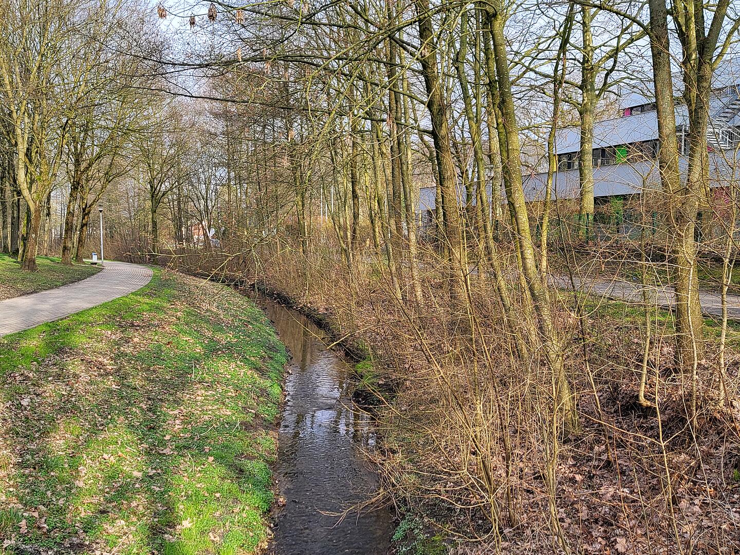 Ein Regenrückhaltebecken (RRB) ist im Grunde ein rein technisches Bauwerk. -Es nimmt die Niederschläge auf, die bei versiegelten Flächen nicht mehr im offenen Gelände versickern können, und gibt sie verlangsamt und gesteuert an den nächsten Vorfluter ab, in diesem Fall an den Icker Bach.
