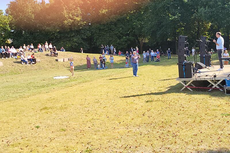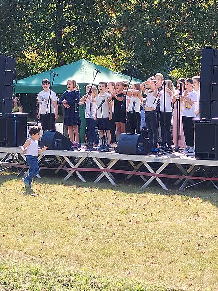 Der neue Park hat für Umweltbildung und Naherholung allerhand zu bieten: Bänke, die zum Verweilen einladen, Insektenhotel, Naschgarten, Klettersteine, Arboretum sowie eine Art Amphitheater. Es bot am Samstag die Bühne für musikalische Darbietungen der Grundschulkinder und junger Künstler aus der Gemeinde wie auch für die Grußworte von Marcus Hensing, dem Allgemeinen Vertreter des Bürgermeisters, und Mathias Middelberg (MdB).