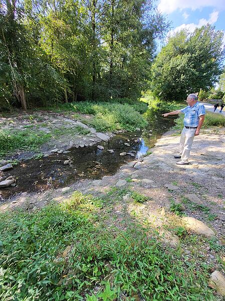 Immer wieder standen bei Starkregen die Grundstücke in diesem Bereich des Icker Baches unter Wasser. Dem wurde im Zuge der Umgestaltung mit einer Art Sohlgleite entgegengewirkt, deren Funktionsweise Horst Kipp, der Techn. Leiter des Wasserverbandes, am Rande der Veranstaltung kurz erläuterte. Eine der tiefliegenden Pflasterabschnitte des Parkweges wurde aufgelöst und um etwa 50 Zentimeter auf das sonstige Wegeniveau aufgeschüttet. Der Icker Bach hingegeben wurde eingeengt, sodass er bei Starkregenereignissen lediglich in den Park und nicht auf die umliegenden Grundstücke austreten kann. Wie eine Anwohnerin berichtete, habe sich dadurch die Situation bei Regenwetter sehr verbessert.