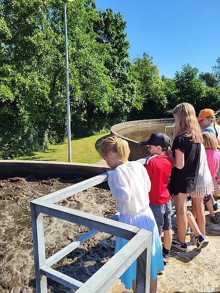 Bohmte. Nachdem in den letzten Wochen vor den Sommerferien bereits mehrere Grundschulklassen unsere Klärawerke in Bissendorf und in Schledehausen besucht hatten, schauten sich am 26. Juni 15 Kinder der evangelischen St. Thomasgemeinde Bohmte unsere Kläranlage am Maschweg an. Begleitet wurden sie von Anette Rupenkamp, Sieglinde Rausch und Diakonin Rhena Wilinski. Der Besuch war Teil der Sommerferienspiele, die die Kirchengemeinde jedes Jahr in den Sommerferien anbietet – jedes Jahr unter einem anderen Motto.In diesem Jahr lautete es „Wasser ist Leben“, und so stand neben biblischen Geschichten auch die Bedeutung von Wasser als Lebenselixier, aber auch die Frage, wo das von uns benutzte Wasser hingeht, auf dem Programm.
