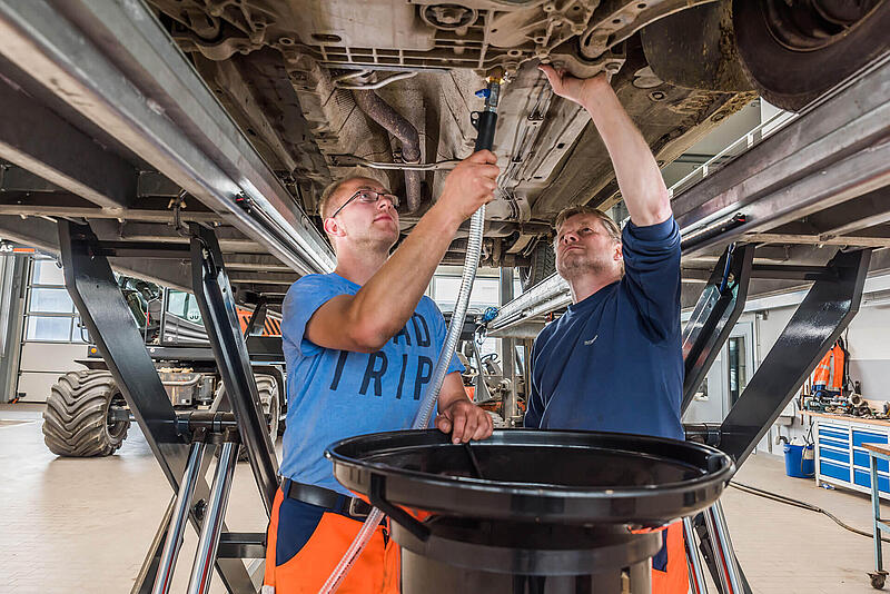 Im Rahmen der Ausbildung wirst Du in unserer Werkstatt in alle Prozesse und Vorgänge der Fahrzeugwartung und - instandhaltung für unseren eigenen Fuhrpark (land-, forst- und bauwirtschaftliche Fahrzeuge und Maschinen) eingesetzt.